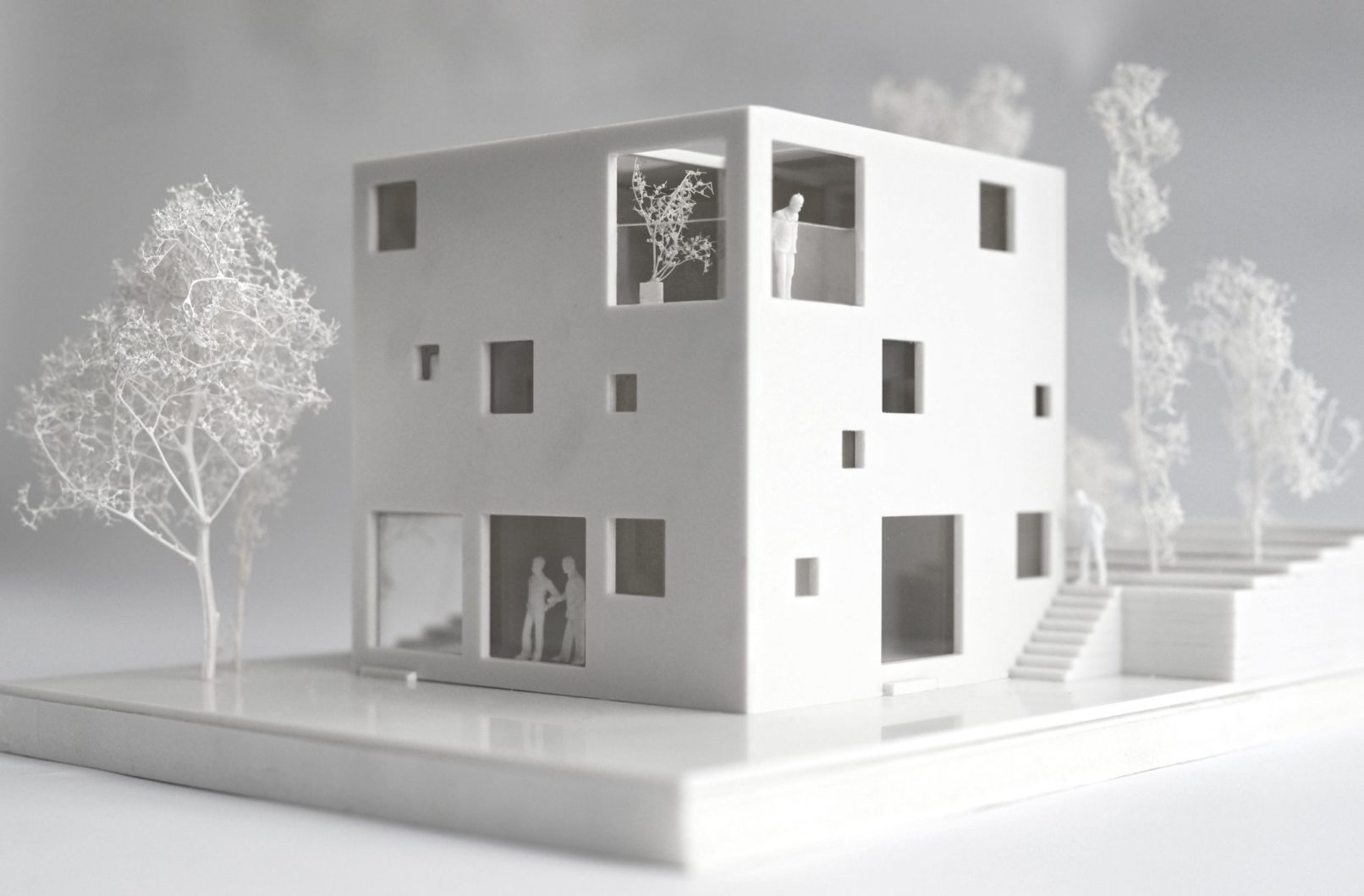 For this residential area a single-family house as well as a series and a double type were designed. The spatial structures are based on a square grid, which allows fluid spaces, but also a flexible use and space adjustment, thus allowing great variability of the ground plan. The basic idea of the grid is based on the spatial divisions of villas in Jugendstil, but has been implemented with respect to the modern era.