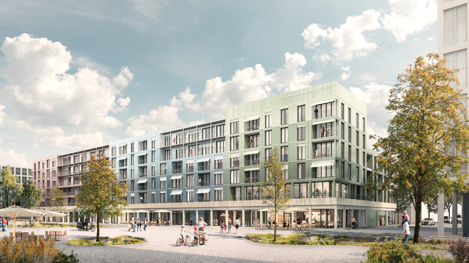 The new Greenville urban quarter is a livable and diverse district of Karlsruhe, characterized by architectural diversity and spaces with a high quality of stay. The guiding principle of DGJ’s design ‘The human scale’ is an architecture that is oriented towards people in terms of dimension, diversity and design and invites identification and appropriation on different levels. ‘The human scale’ emphasizes the importance of empathy, consideration, fairness and sustainability, values that should shape the future of the North of Karlsruhe.