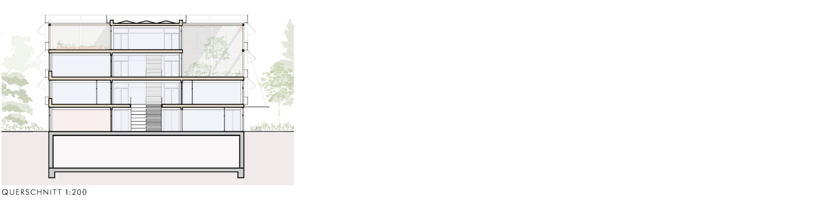 The floors have clear thematic categorisations: General learning areas, specialised classes, Johannisheim after-school care centre, open all-day school and the school’s public functions of entrance area, break hall and canteen on the ground floor. The music room and theatre were also allocated to the ground floor so that they could be used as an option for extending the public areas. The vertical organisation of the school requires longer routes to the outdoor spaces that are particularly important for the children. For this reason, usable outdoor areas are also provided on the upper floors as “green classrooms” to enable lessons in the fresh air. Similar outdoor areas are also attached to the specialised classes and workrooms as work and experimentation rooms.