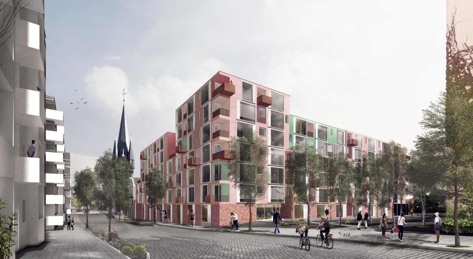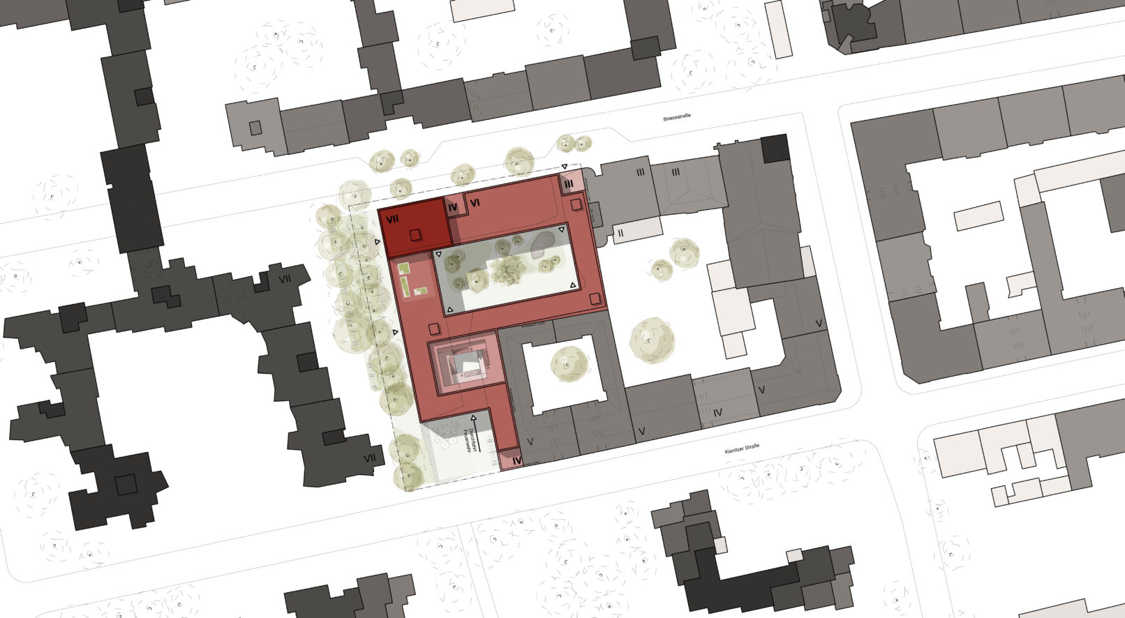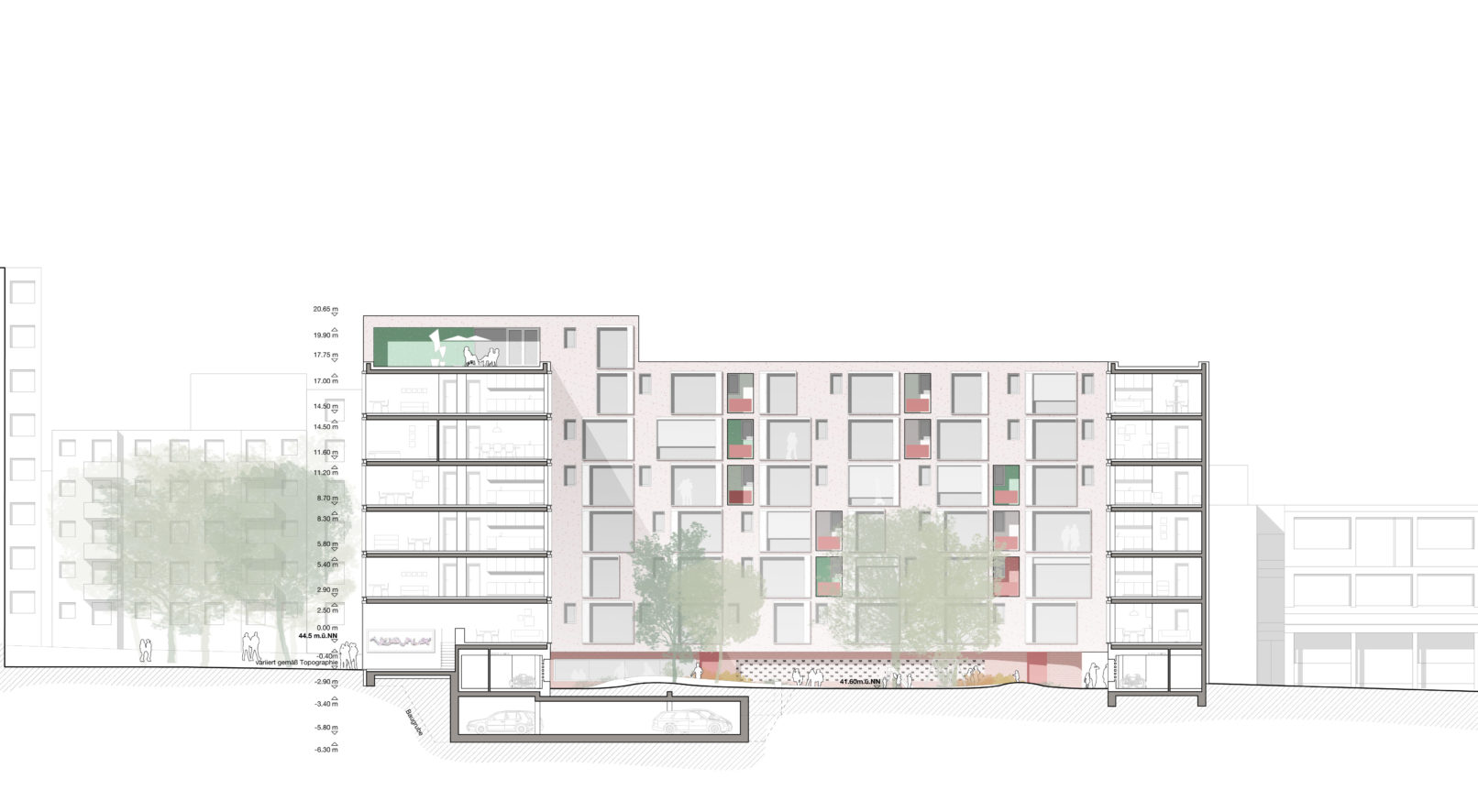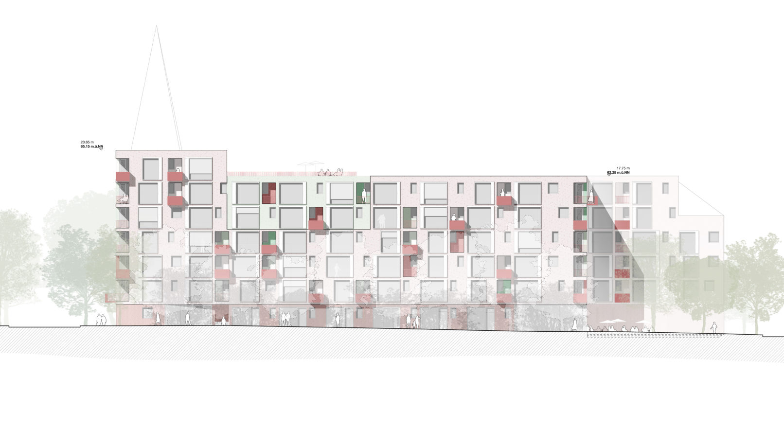 The competition entry for Neukölln forms a link between the block structures of the 19th century in the east and the open urban high-rise buildings of the 80‘s. In this way the building volume closes on one side to the block edges and forms a conclusion of the block. The dense urban constructions typical for Berlin reveals its quality above all from the inner courtyards.